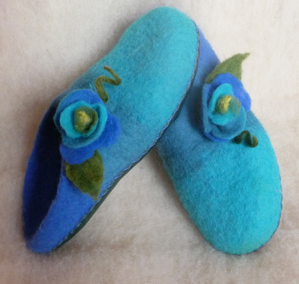 Kék virágos nemezpapucs