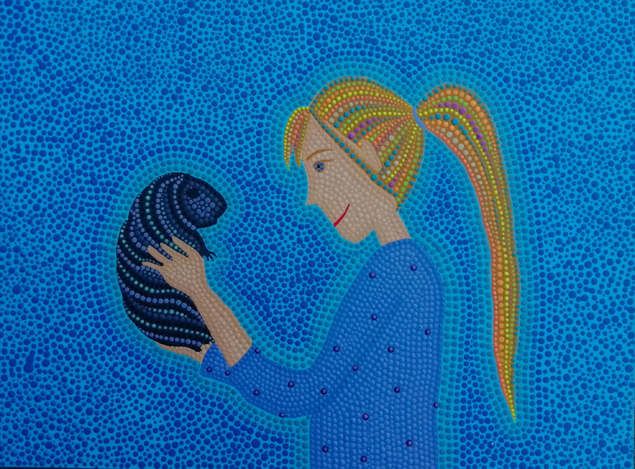 Magnus és én, pöttyöző technika, akril festék alapozott farost lemezen